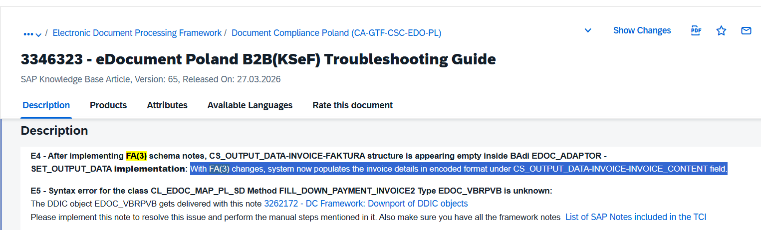 This week, I was challenged with changing the content of eDocuments related to Poland. I already did this in past for other countries, so I felt comfortable in doing this. Create a BAdI Implementation, filtered by country PL, change content and I'm done.
